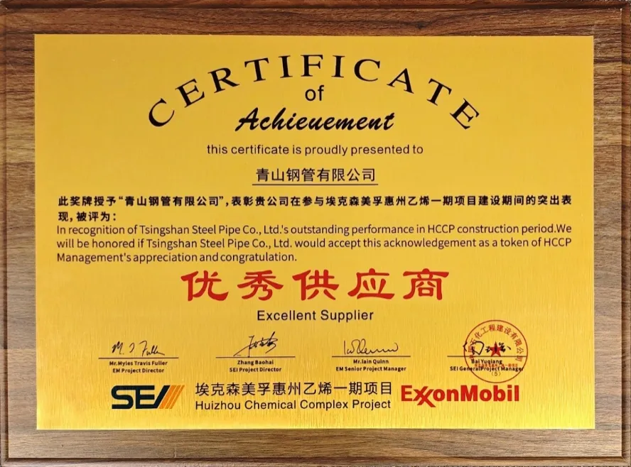 近日,青山鋼管有限公司憑借其卓越的產(chǎn)品質(zhì)量、專業(yè)的技術(shù)實(shí)力和及時高效的售后服務(wù),榮獲中石化SEI??松梨诨葜菀蚁┮黄陧?xiàng)目的“優(yōu)秀供應(yīng)商”稱號。