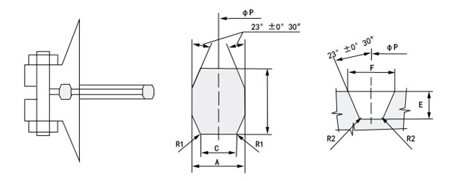 墊片安裝在法蘭面的梯型環(huán)槽內(nèi),當(dāng)擰緊連接螺栓時(shí),受軸向壓縮與上下梯型槽帖緊,產(chǎn)生塑性變形,形成一環(huán)狀密封帶,建立初始密封。升壓后,在介質(zhì)壓力的作用下,使環(huán)墊徑向擴(kuò)張。墊片與梯形槽的斜面更加帖緊,產(chǎn)生自緊作用。但是,介質(zhì)壓力的升高同樣會(huì)使法蘭和連接螺栓變形,造成成密封面間的相對(duì)分離,墊片密封比相對(duì)下降,因而,環(huán)墊可以認(rèn)為是半自緊密封。